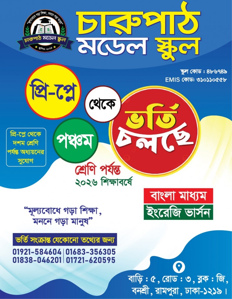চারুপাঠ মডেল স্কুলে আপনাকে স্বাগতম। প্রি-প্লে থেকে নবম শ্রেণি পর্যন্ত বাংলা মাধ্যম ও ইংরেজি ভার্সনে ভর্তি চলছে!! Wednesday, June 4, 2025